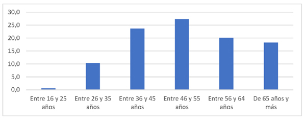 Gráfico 3: Distribución de la recaudación en el IRPF por grupo de edad (% de recaudación)